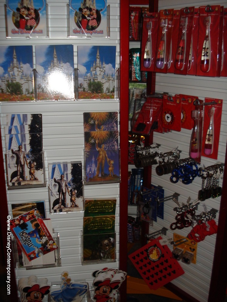 Disney’s Contemporary Resort has three shops on its 4th-floor, selling just about anything you’d need from clothing, jewelry, food, reading material, sunscreen, medicines and drugstore products, bandaids, bathing suits, and beverages.
